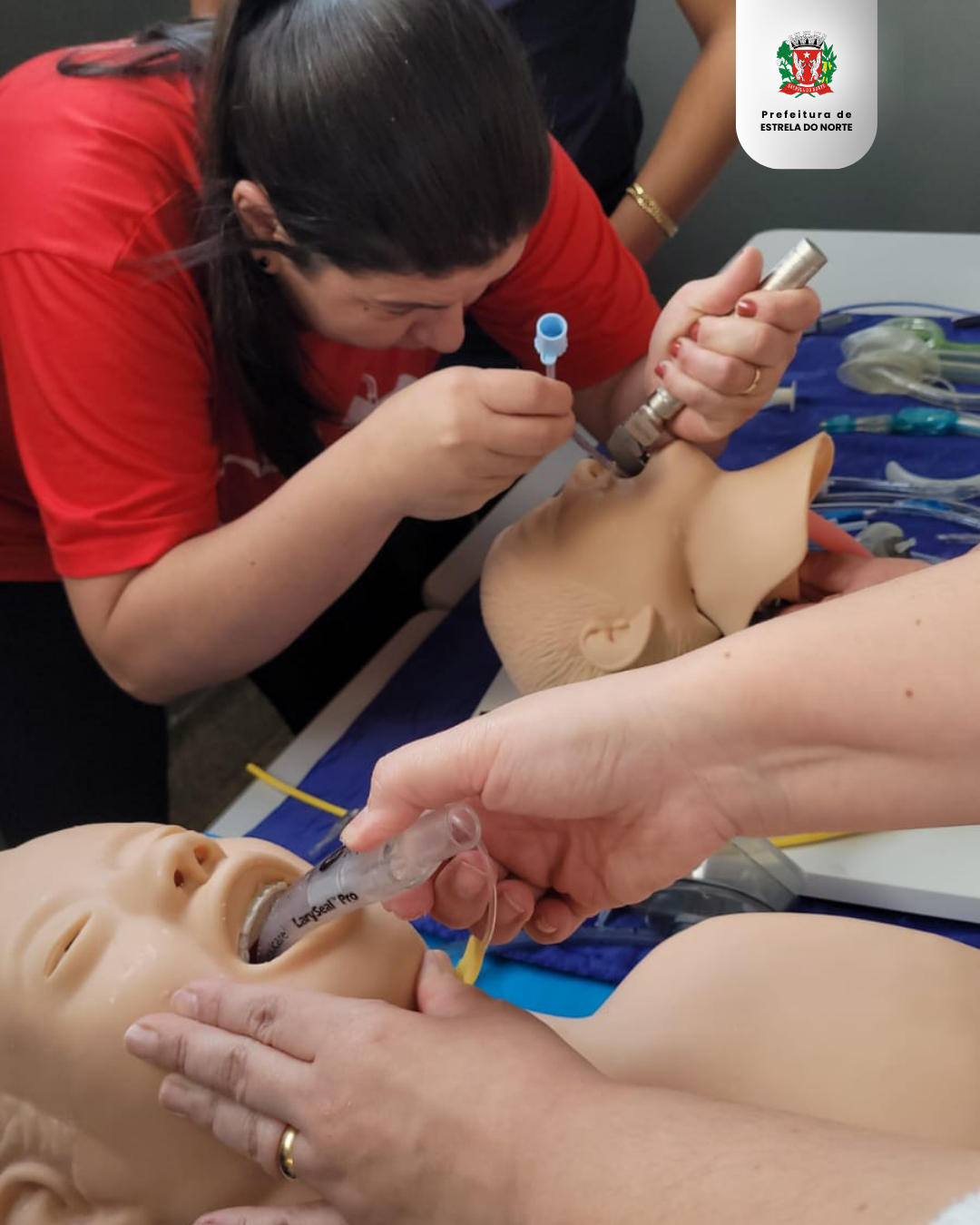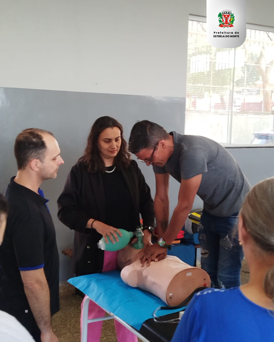 A capacitação envolveu exercícios sobre parada cardiorrespiratória (PCR) com auxílio do desfibrilador externo automático (DEA), dispositivo máscara laríngea, drogas na PCR, antiarrítmicos, crise convulsiva, conduta, manobras de desengasgo.