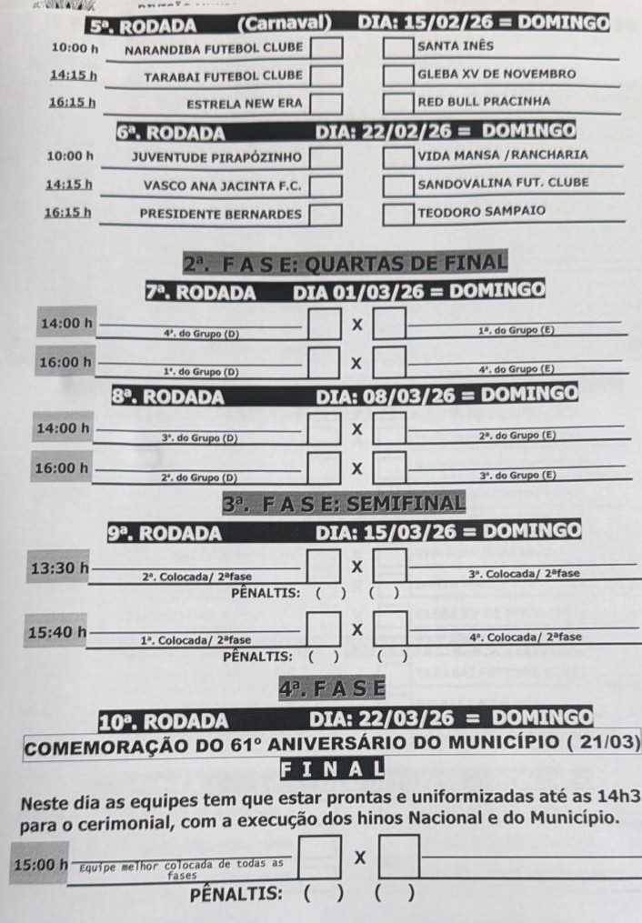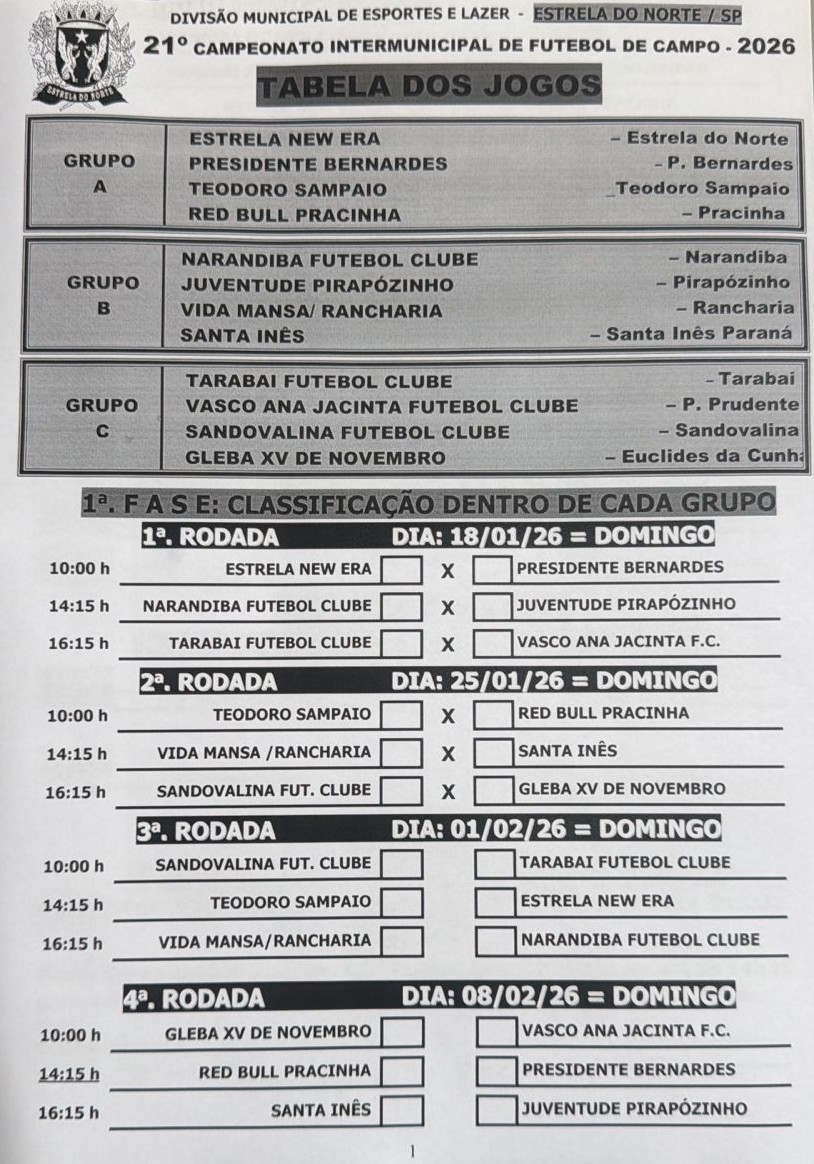 ➡️A abertura será com o time da casa e atual campeão, Estrela New Era, enfrentando o Presidente Bernardes em mais uma edição marcada por rivalidade, emoção e muita torcida.